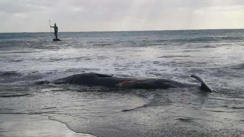 A primera hora de esta mañana TELDEACTUALIDAD daba cuenta de la aparición del cetáceo que, según las primeras impresiones de vecinos de la zona podría estar aún vivo, una circunstancia que técnicos del Cabildo que se acercaron a Melenara desmintieron al confirmar a este medio que el mamífero marino se hallaba muerto y que su fallecimiento podría ser relativamente reciente porque aún sangraba por la aleta caudal, que presenta una herida profunda, fruto casi con toda seguridad de una colisión con una embarcación.