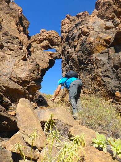 Telde.- El Colectivo Turcón-EeA llevó a cabo este sábado una visita al Macizo de Amurga con el claro objetivo de llegar a una ventana rocosa, situada en Lomo de la Ventana, entre la Cañada de Los Guinchos y la Cañada de la Ventana.
