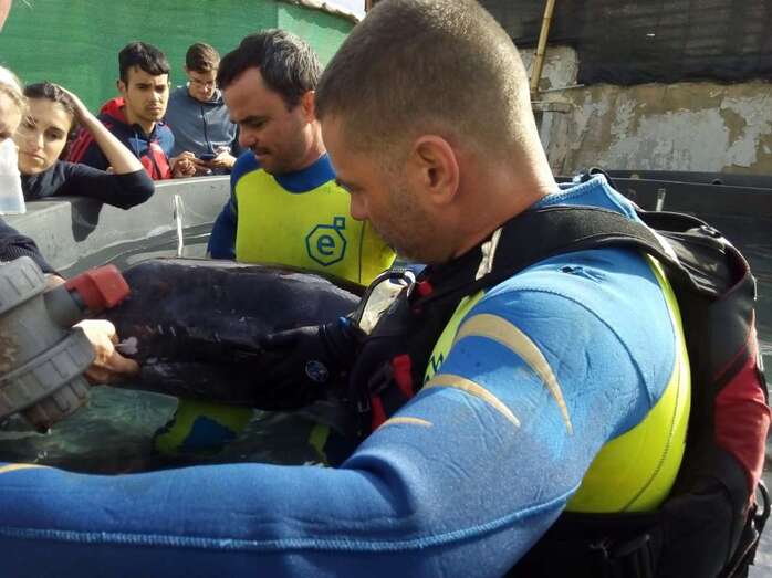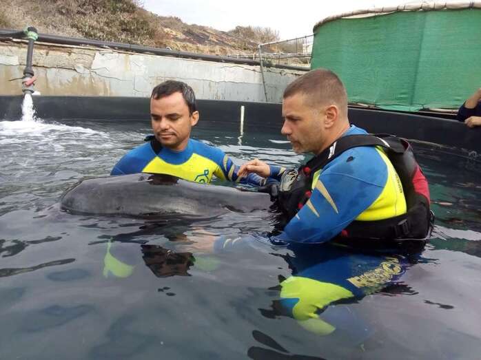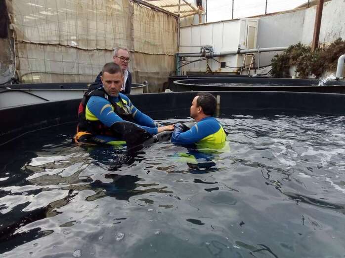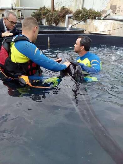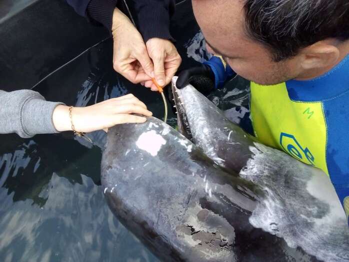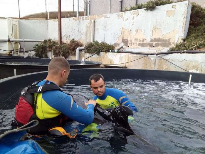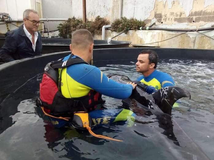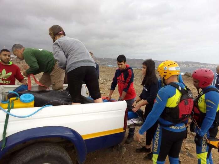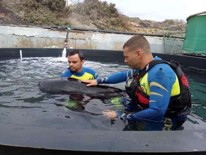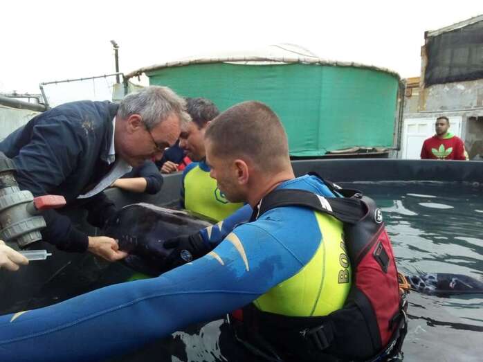 Tras sacarlo del agua, fue trasladado hasta el hasta Taliarte, hasta el Centro de Recuperación de Fauna Silvestre del Cabildo, para se tratado de sus heridas y posteriormente devuelto al agua.