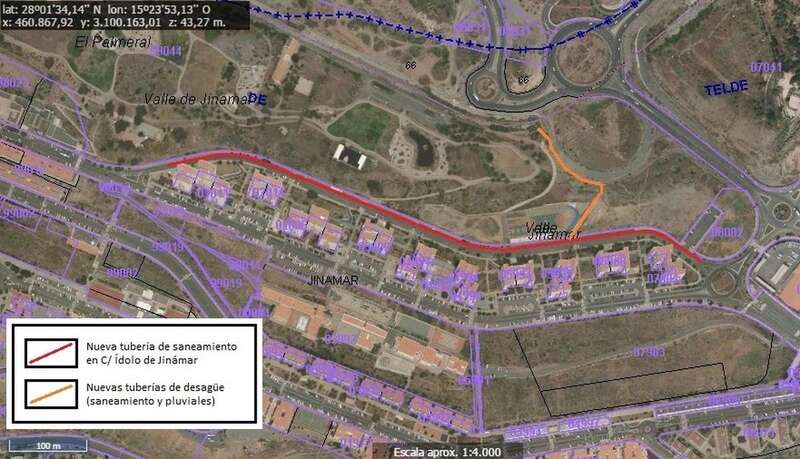 Así, el Ayuntamiento está instalando una nueva conducción de saneamiento de PVC de 660 metros lineales que recorre longitudinalmente la calle Ídolo de Jinámar para desembocar en una red existente paralela al cauce del barranco. En esta vía existían dos redes paralelas bajo los acerados, una a cada lado de la vía, en las que se han condenado las acometidas de saneamiento para crear otras nuevas que conectan con la nueva conducción, derivando de esta manera todas las aguas negras a la nueva tubería y, al mismo tiempo, descargando ambas redes que quedan solo para aguas pluviales.