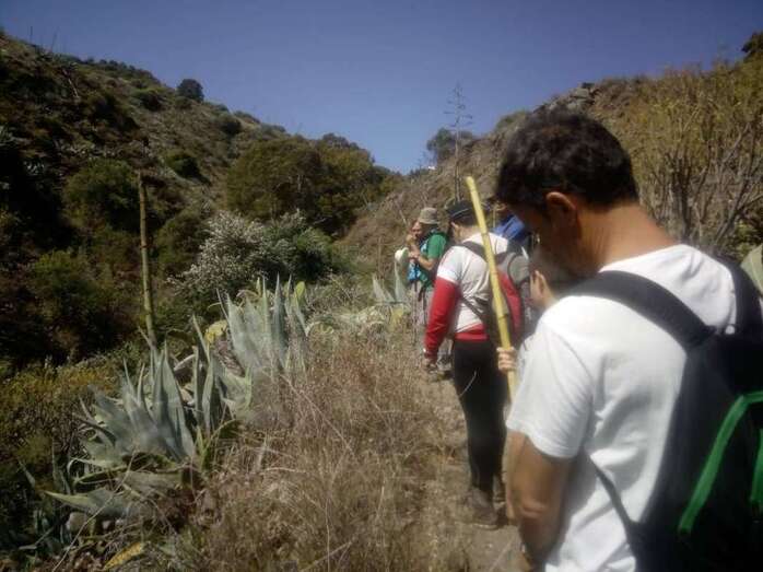 El recorrido, de unos 6 kilómetros de distancia y de dificultad alta, discurrió en gran parte por el Valle de San Roque, cruzando la divisoria que separa los municipios de Telde y Valsequillo. Así, en La Solana, a unos 214 sobre el nivel del mar, el grupo bajó al cauce del barranco para remontarlo hasta San Roque y pasar junto a las instalaciones abandonadas de la embotelladora de agua.
