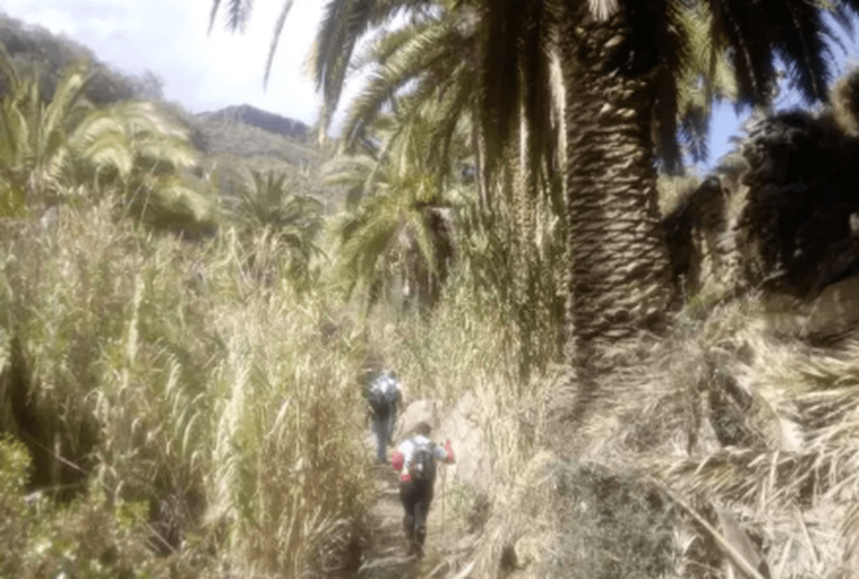 El grupo cruzó la carretera GC-810 y pasó por la cabecera del barranco de Correa, tributario del cauce principal. Desde este punto los senderistas se adentraron en Correa y cruzaron el tramo principal del barranco de San Roque en su cabecera. Y siguiendo una senda pastoril afrontaron un empinado ascenso al Lomo de la Corona del Montañón y la Abejera Alta, que con unos 800 metros por encima del mar fue el enclave más alto de la ruta.