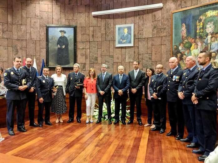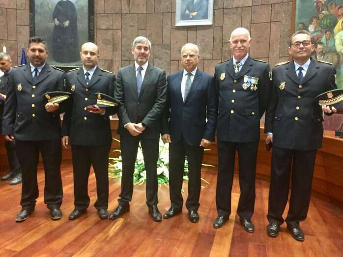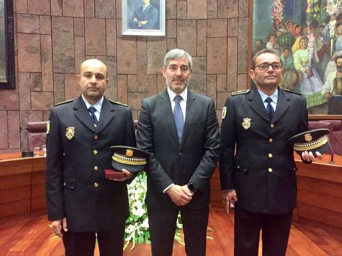 Por todos estos logros y más, Rosendo Valido y Luis Leandro Hernández viajaron este miércoles a la isla de La Gomera, donde, a instancias del Ayuntamiento de Telde, les fue impuesta la Medalla al Mérito Policial que concede la Consejería de Política Territorial, Sostenibilidad y Seguridad del Gobierno de Canarias. Durante el acto, presidido por el mandatario canario en funciones Fernando Clavijo, estuvieron acompañados por el agente Armando Martín y el jefe de la Policía Local, Félix Ramos, quien por cierto un año atrás recibía esta misma condecoración por su destacada trayectoria profesional.