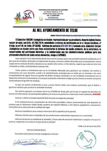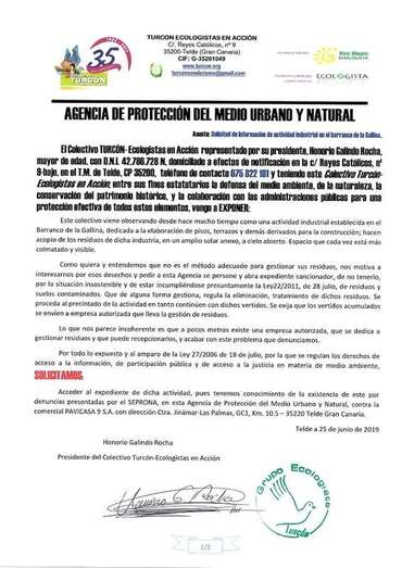 Telde.- El colectivo ecologista Turcón ha denunciado la existencia de una industria contaminante en el polígono fabril de Cruz de la Gallina, una empresa «que se dedica a acumular residuos de materiales para construir suelos de viviendas, pisos, terrazos y derivados sobre un suelo rústico de especial protección agrícola», a cielo abierto y que ya está casi colmatado.