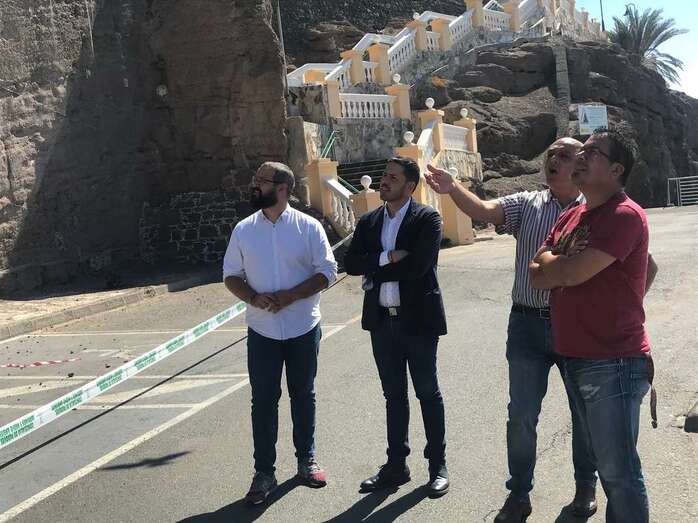 Con posterioridad a la publicación de esta noticia, el Ayuntamiento de Telde ha emitido una nota de prensa explicando que el alcalde Héctor Suárez se acercó esta mañana a la zona acompañado por el edil de Playas, Jonay López y añadiendo que el mallado tiene unos 33 metros de largo y ha sido dispuesto para frenar la caída de piedras que "se venía dando como consecuencia de la erosión de la ladera derivada de las aves que se posan sobre la misma".