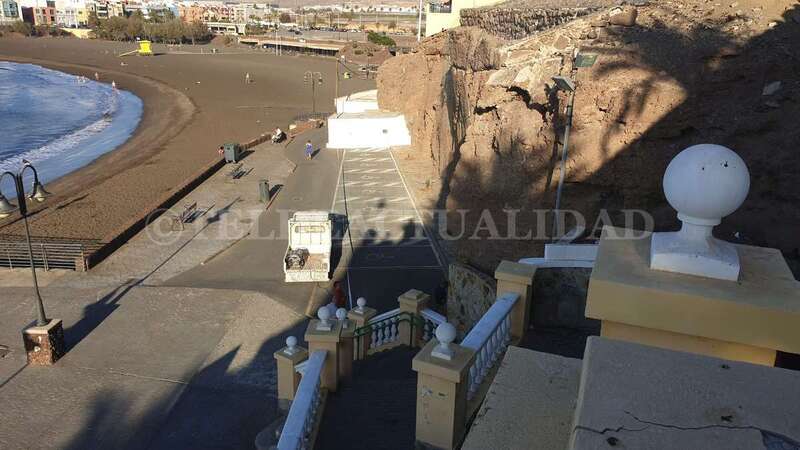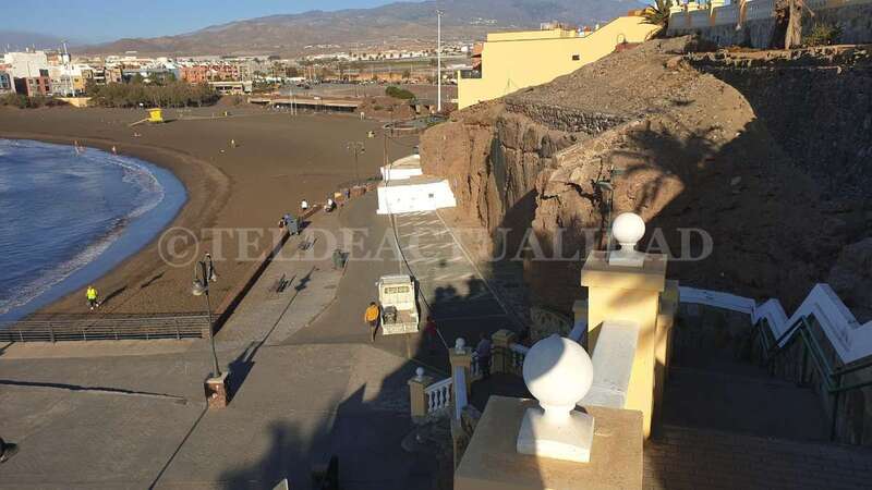 El artilugio se ha desplegado en la ladera del paseo marítimo, junto a las escalinatas que comunican el tramo de Melenara con el de Taliarte. Precisamente bajo este cantil rocoso hay siete plazas de aparcamiento para personas con movilidad reducida y vehículos de emergencia.