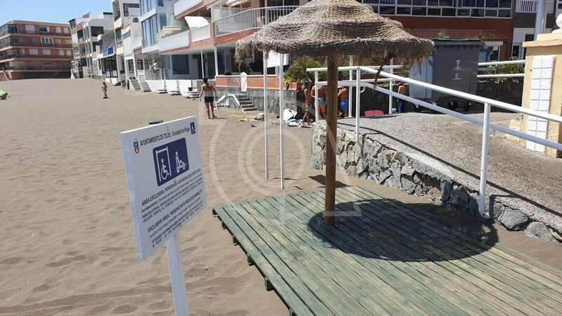 Telde.- La playa de Salinetas, una de las cuatro de Telde que posee Bandera Azul, cuenta con un nuevo espacio de descanso exclusivo para personas con movilidad reducida, ubicado junto al acceso a la arena que está en el centro de esta popular cala local.