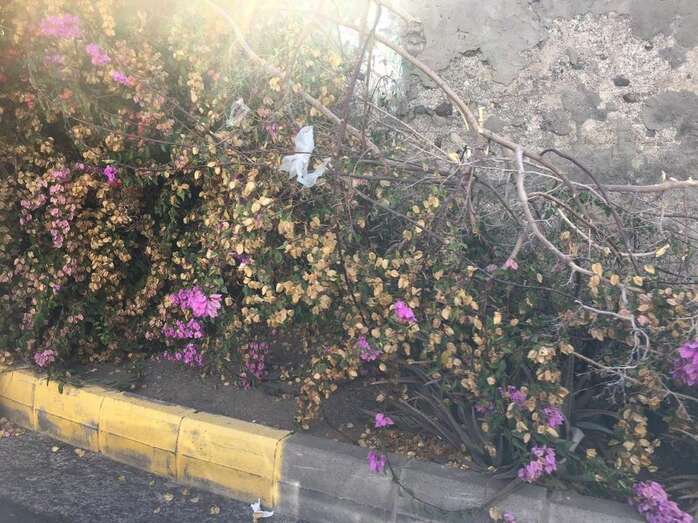 La buganvilla que daba cobijo del asiento de la parada de guaguas se vino abajo este jueves (Foto TA) La buganvilla que daba cobijo del asiento de la parada de guaguas se vino abajo este jueves (Foto TA)