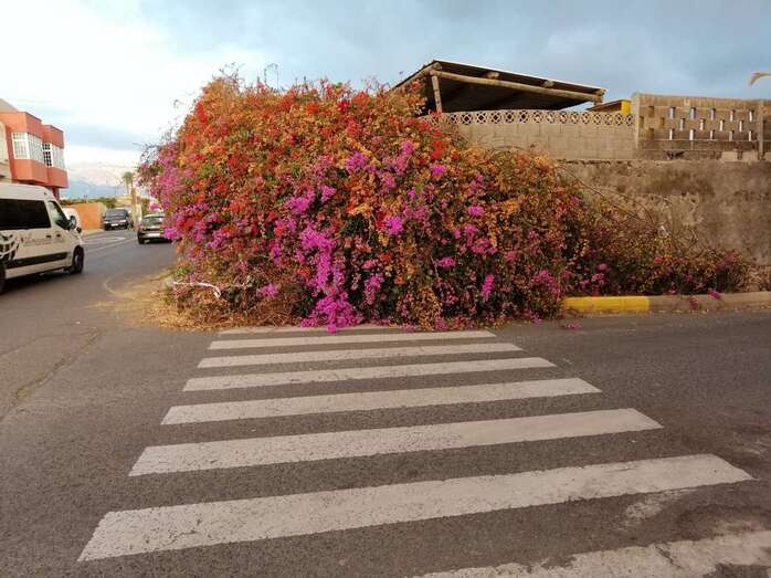 Los habituales tertulianos se han quedado sin el cobijo de este bello ejemplar de buganvilla y desde el departamento de Parques y Jardines que lleva el edil Álvaro Monzón (MxT) se ha programado para el próximo lunes una intervención para retirar lo que queda de la enredadera, una acción que requiere de varios permisos, entre ellos de Tráfico para poder ocupar la vía pública con la maquinaria.