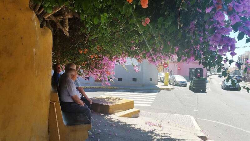 En su ramificación, esta planta trepadora por excelencia llegó a formar un techo natural sobre el banco de mampostería próximo a la parada de guagua en la antigua salida de El Hornillo, en la carretera de Melenara, un espacio donde a diario vecinos de lugar se reúnen para hablar de esto y de lo otro mientras se entretienen viendo el paso de personas y vehículos.