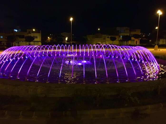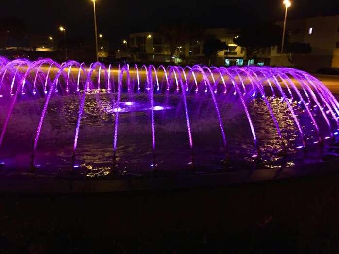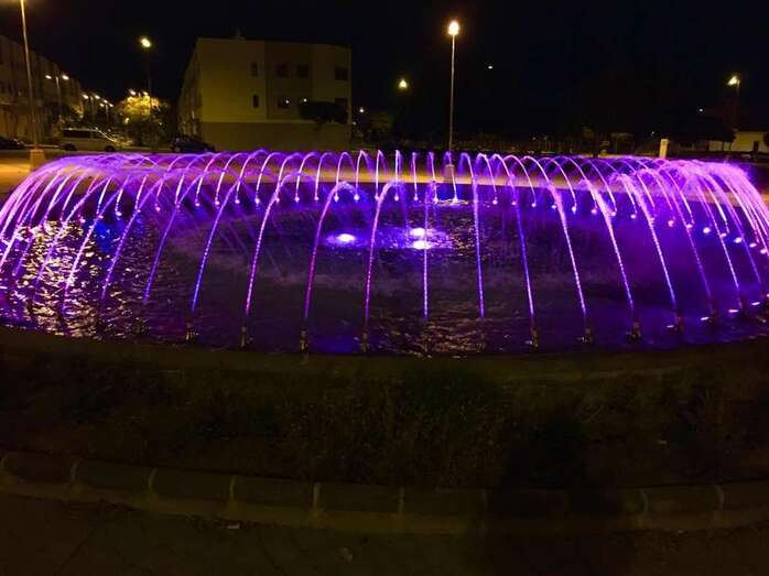 Telde.- La fuente pública que está en la plaza de Ana y Vicente Ferrer, en la urbanización La Vega, se ha iluminado esta noche de color violeta y así permanecerá todo el fin de semana para reivindicar la igualdad de género con motivo del 8 de Marzo, Día Internacional de las Mujeres.