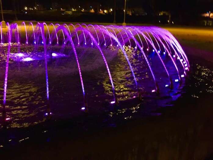 La fuente de La Vega cuenta con unos 72 proyectores sumergibles sistema led RGB (Red-Green-Blue) multicolor, de potencia eléctrica 5w y de máxima eficiencia energética.