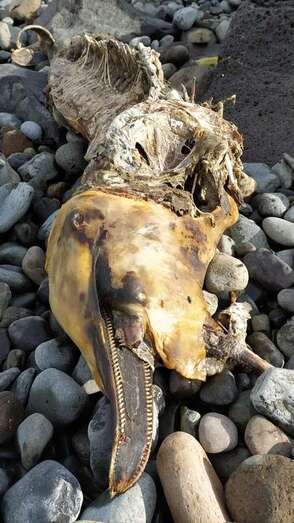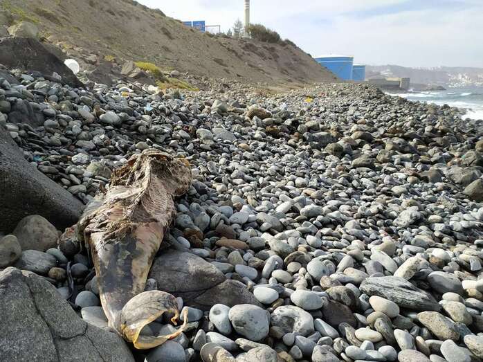 Además, en el litoral de Jinámar, en una pequeña cala de callaos próxima a la estación depuradora de aguas residuales, también se ha hallado en las últimas horas un delfín en avanzado estado de descomposición de un delfín.