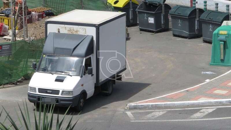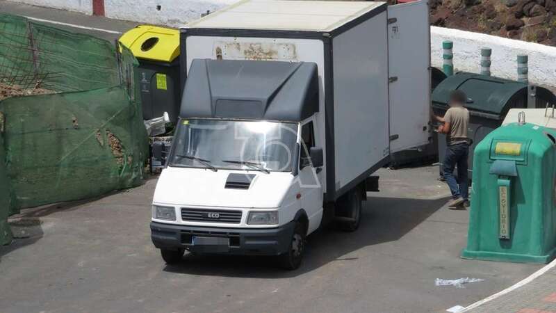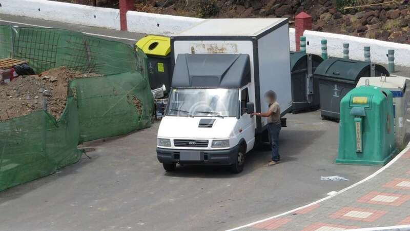 El conductor de un furgón marca Iveco estuvo durante casi media hora descargando y echando cajas de plástico en el recipiente de color gris.