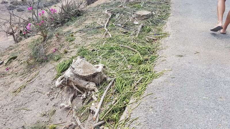 Y es que la acción anunciada por el área que dirige el edil Álvaro Monzón ha suscitado críticas del vecindario. “Están arrasando todos los árboles y palmeras. No es una poda porque están cortando desde la base todas las especies”, comenta enojando un residente en este barrio teldense.