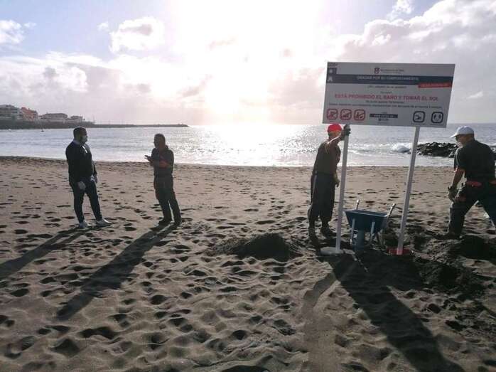 Telde.- El Ayuntamiento de Telde, a través de la Concejalía de Playas que dirige Jonay López, instala estos días 12 carteles informativos en las calas del municipio en los que se indican las condiciones de uso y disfrute de las playas como espacios naturales, en base a las medidas recogidas en la Fase 1 del Plan para la Transición hacia una nueva normalidad del Gobierno de España.