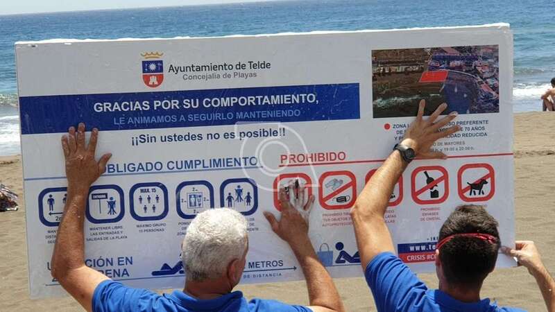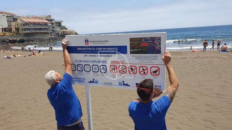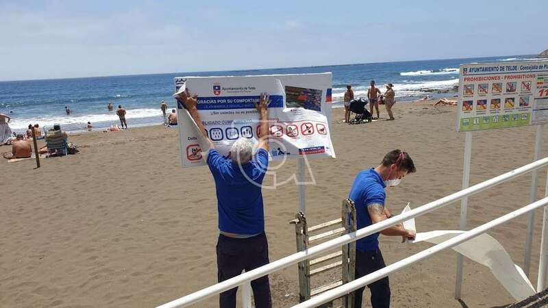 Telde.- La Concejalía de Playas procedió durante la jornada de este lunes a cambiar los carteles informativos que había instalado días atrás para adaptar su contenido a la fase 2 de la desescalada en la que entró Gran Canaria en esta jornada.
