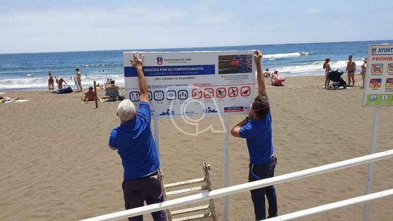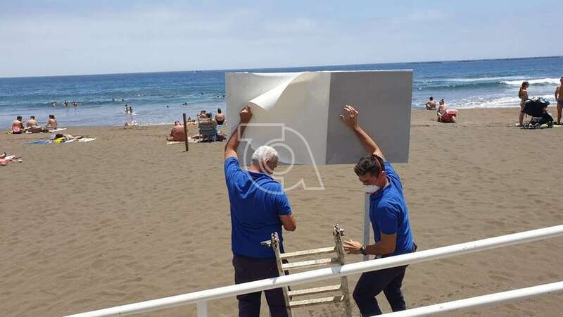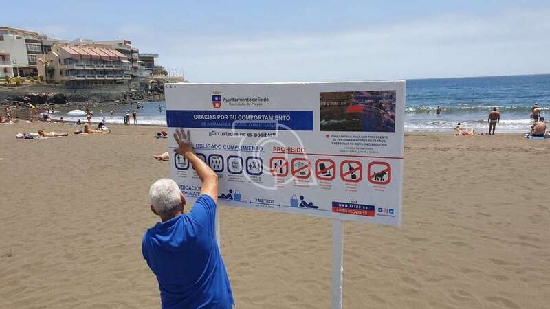 Los nuevos vinilos con la información actualizada fueron colocados en las diferentes calas del municipio y en ella se precisa de forma sucinta las normas de obligado cumplimiento con el fin de evitar posibles contagios tras su reapertura al baño, así como las zonas acotadas en cada playa para las personas de más de 70 años y con movilidad reducida.