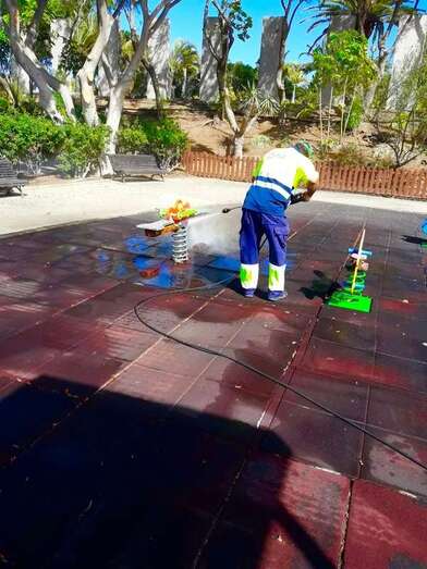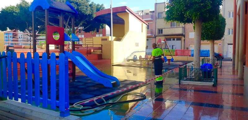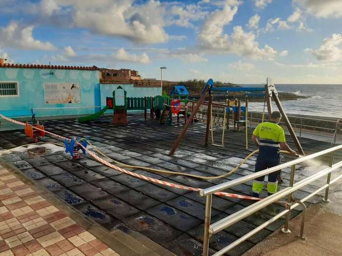 Labores de limpieza y desinfección en el parque infantil de Playa del Hombre (Foto TA) Labores de limpieza y desinfección en el parque infantil de Playa del Hombre (Foto TA)
