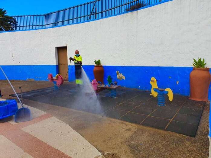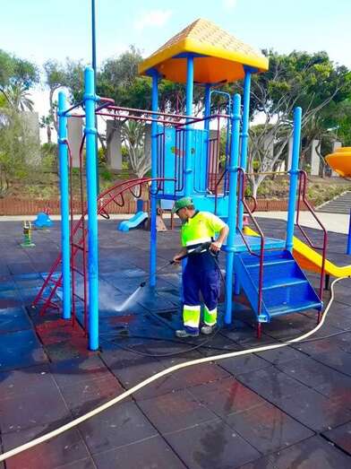 Limpieza y desinfección de un parque infantil de Telde (Foto TA) Limpieza y desinfección de un parque infantil de Telde (Foto TA)