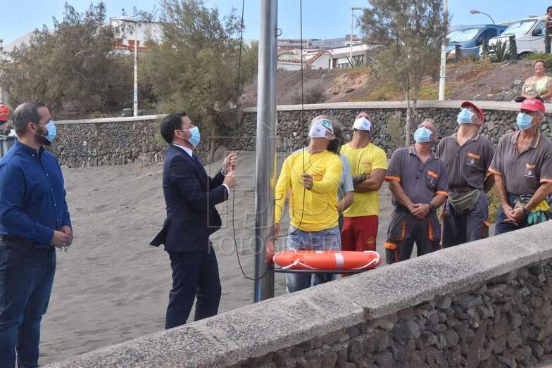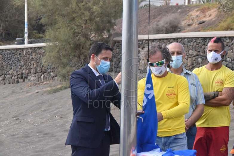 Así lo anunciaron esta mañana tanto el alcalde Héctor Suárez como el titular del área, Jonay López, en el acto simbólico de izado de la bandera azul que tuvo lugar en Hoya del Pozo, galardón europeo que volverá este año a ondear en cuatro playas del municipio (Melenara, Salinetas, la Garita y Hoya del Pozo) en reconocimiento a la calidad de sus aguas, seguridad, servicios y equipamientos,