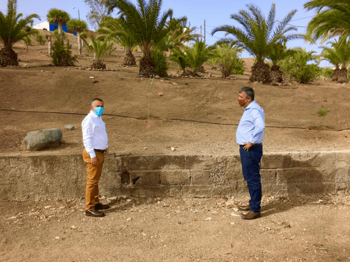 El concejal del área, Álvaro Monzón, visitó estos días este espacio verde junto al edil del distrito Jinámar, Servando González, para conocer el resultado de las labores que se están desarrollando en este palmeral y estudiar nuevas acciones para mejorar de forma paulatina este espacio verde del municipio.