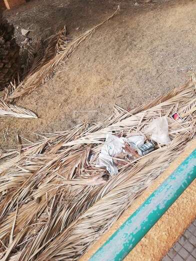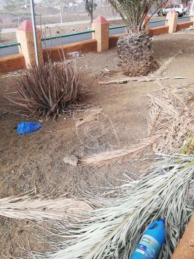 “Dado que todo seguía igual y que por aquí no pasaba nadie”, la presidente de la comunidad de propietarios y un grupo de vecinos se afanaron en una tarea que corresponde a operarios municipales. Tras culminar los trabajos de limpieza remitieron un video al Ayuntamiento para mandarán un vehículo para recoger la basura y las hojas de palmera, “pero aún ahí sigue”, denuncian.