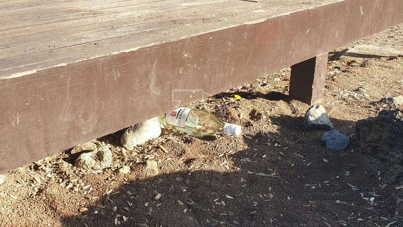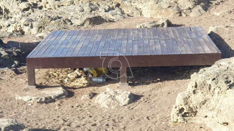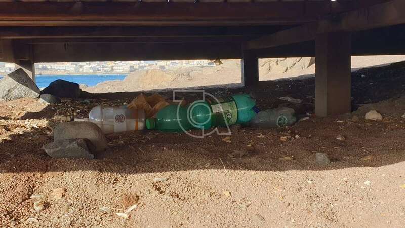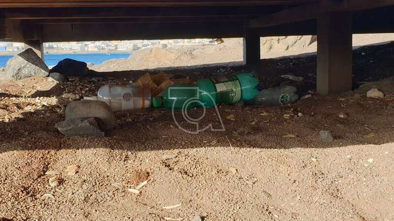 Telde.- Botellas de plástico y de vidrio, latas, cascaras de pipas, bolsas y residuos de todo tipo se acumulan debajo y alrededor de las tres tarimas de madera que se usan como solario en los riscos de Taliarte, al sur del muelle deportivo-pesquero.