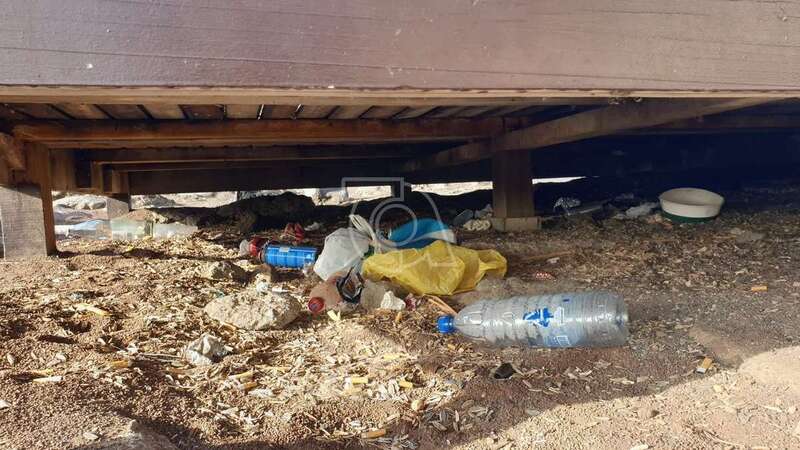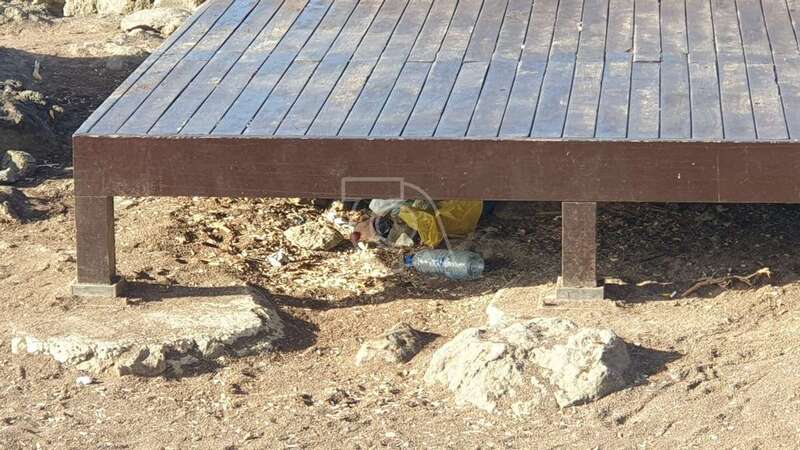 La basura se amontona debajo de la tarima para tomar sol y a su alrededor