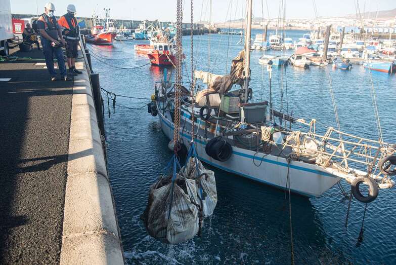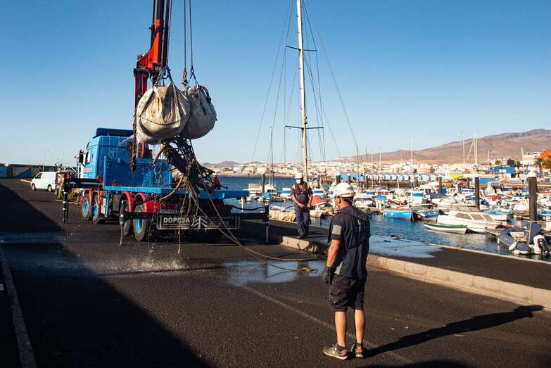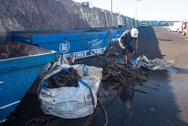Telde.- El Cabildo de Gran Canaria extrajo hoy 25 grandes sacas de plásticos y cabos, además de neumáticos y hasta carros de supermercado, de los fondos del muelle de Taliarte dentro del plan de choque para relanzar este espacio de propiedad insular y explotar todas sus posibilidades pesqueras, científicas y deportivas con la inversión de 1,6 millones de euros.
