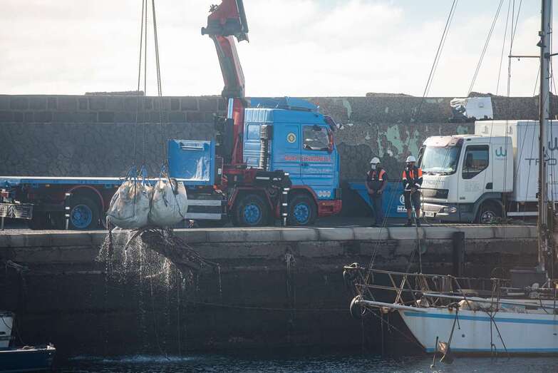 El Cabildo extrae 25 grandes sacas de residuos de los fondos del muelle Taliarte