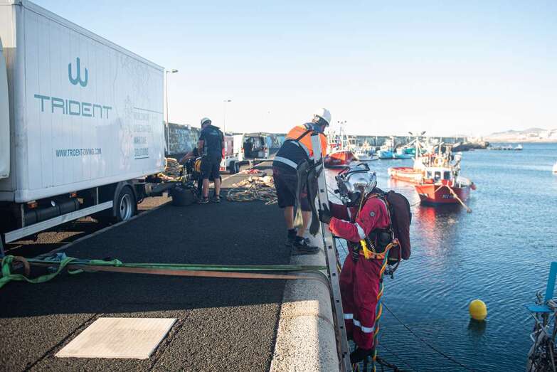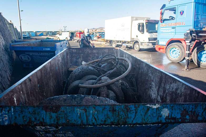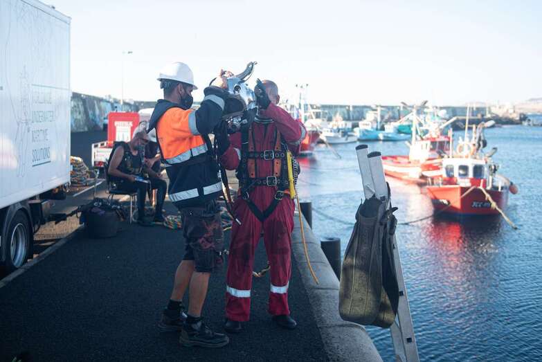 La limpieza llega dos semanas después de que el Cabildo completara el refuerzo de los lastres y cadenas madre de fondo para dotar de mayor seguridad a las 150 embarcaciones amarradas a los pantalanes del muelle de Taliarte y es otra más de la veintena de intervenciones previstas en lo que queda de año y el próximo en las instalaciones portuarias.
