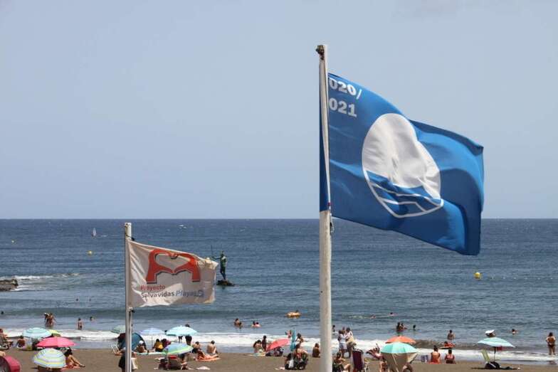 Melenara con bandera verde y azul merecida regala su naturaleza marina a los veraneantes. Cautela, mascarillas y seguridad en distancia.