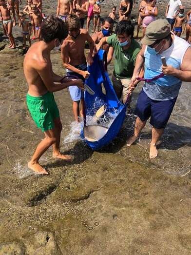 La edila, Auri Saavedra, explica que varios usuarios de esta cala advirtieron al Cabildo de Gran Canaria, concretamente al equipo del Centro de Recuperación de Fauna, que junto al presidente del Colegio Oficial de Veterinarios procedieron a su captura para, posteriormente, liberarla en el mar.