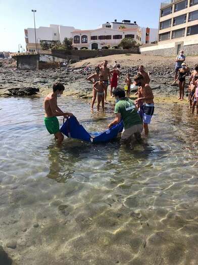 Los profesionales coincidieron que dado el gran número de usuarios de esta cala teldense era un riesgo que la mantelina -una especie marina que cada año se acerca a este lado de la costa- permaneciera en la charca a la espera de que subiera la marea.