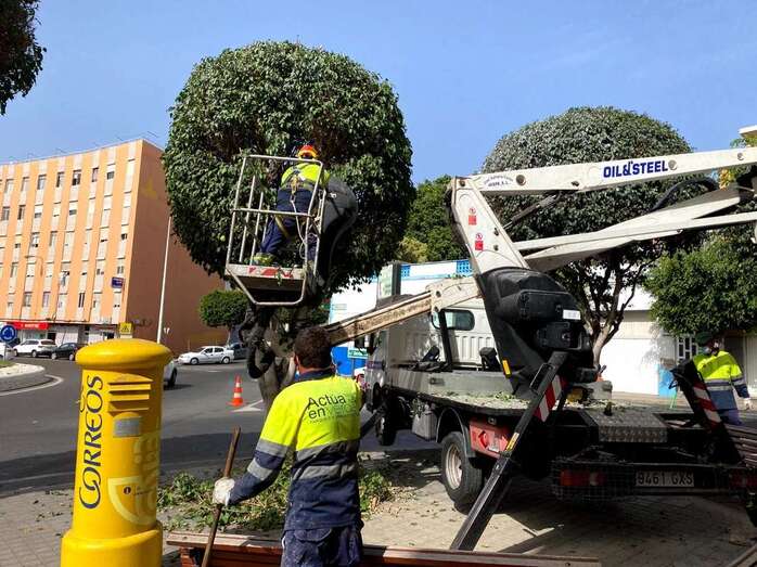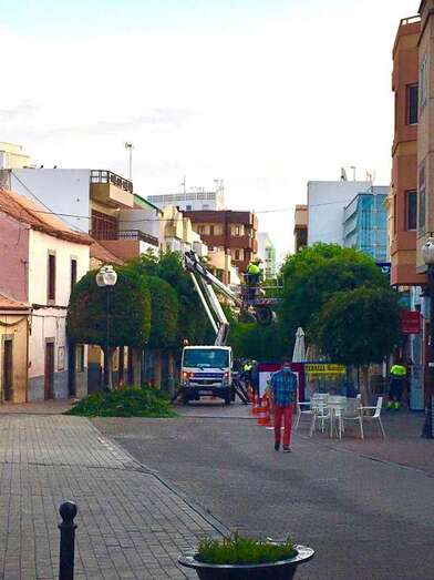 Telde.- El concejal de Parques y Jardines, Álvaro Monzón, informa de que las brigadas de operarios de la empresa concesionaria de la gestión de los parques y jardines del municipio, podadores de grandes árboles, han comenzado las tareas que anualmente realizan en Los Llanos, empezando por la calle Doctor Melián y la Avenida de la Constitución.