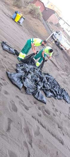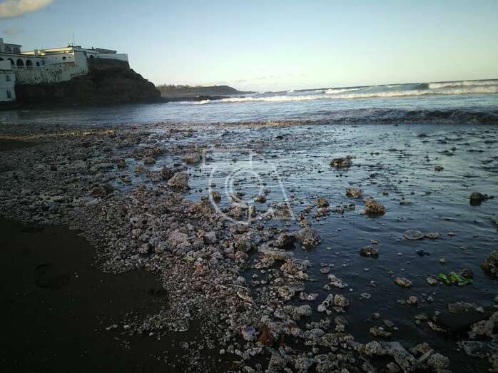 Telde.- Un dispositivo de limpieza, desplegado a primera hora de la mañana por el Ayuntamiento de Telde, retiró de la orilla de Playa del Hombre las ratas muertas y los residuos malolientes que formaban un manto de suciedad en esta cala del litoral local.