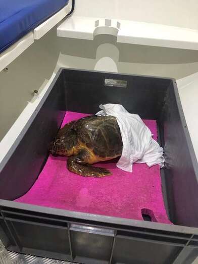 La tortuga, que ya ha sido trasladada al Centro de Taliarte, donde permanecerá bajo vigilancia durante al menos un mes, respira mejor y está más activa, si bien su pronóstico aún es reservado y habrá que esperar a ver su evolución.