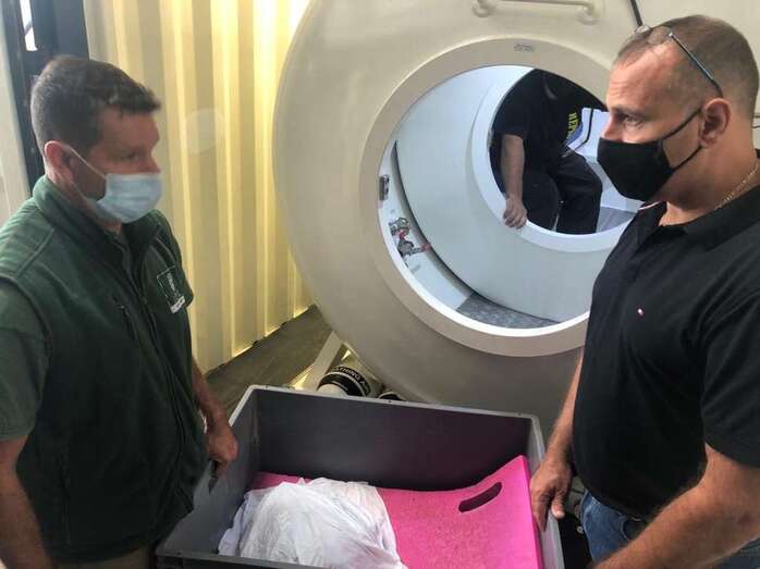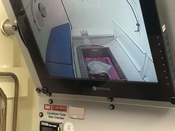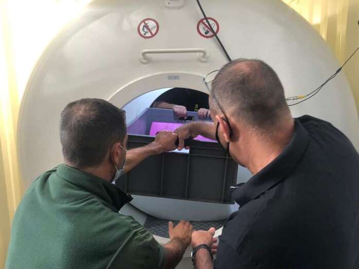 Tras la punción y para extraer el resto de gas de los pulmones de la tortuga, los veterinarios del Cabildo decidieron probar un tratamiento innovador y someter al animal a una cámara hiperbárica, la destinada a los buceadores.