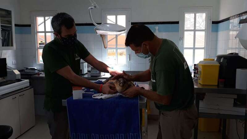 Al determinar que el exceso de flotabilidad y  mal estado de salud del animal se debía a este neumoceloma, los veterinarios a través de una punción eco guiada –mediante ecografía-, lograron sacar 200 mililitros de gas del interior de la cavidad celómica de la tortuga, donde alberga sus órganos.