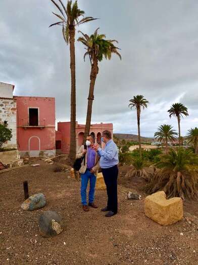 El concejal de Parques y Jardines y Medio Ambiente, Álvaro Monzón, visitó este martes el barrio junto a Manuel Amador, director de Medio Ambiente del Cabildo de Gran Canaria -área que coordina Inés Jiménez-, y el cronista oficial de Telde, Antonio María González, para conocer sobre el terreno el estado de estas palmeras.