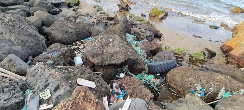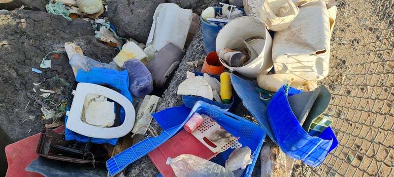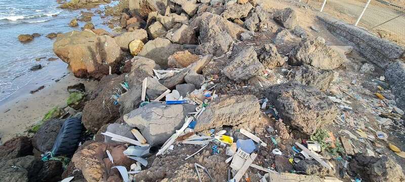 Telde.- Toneladas de basura de todo tipo (plásticos, neumáticos, latas, restos de madera, etcétera) se amontonan en el extremo sur de la playa teldense de Ojos de Garza, donde un grupo de voluntarios llevó a cabo este lunes una intensa acción de limpieza promovida por Cristo Padilla (Plastiman Canario), en colaboración con las áreas de Deportes y Juventud del Ayuntamiento de Ingenio.