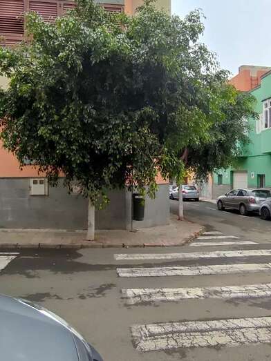 Telde.- La falta de mantenimiento de la arboleda que crecen en las calles de Tenesoya y Guayedra, en el sector poblacional de La Montañeta (El Calero Bajo), ha convertido la zona en un pequeño bosque donde los ejemplares verdes invaden la acera, sus ramas tocan el suelo e interfieren la visibilidad en los pasos de peatones.