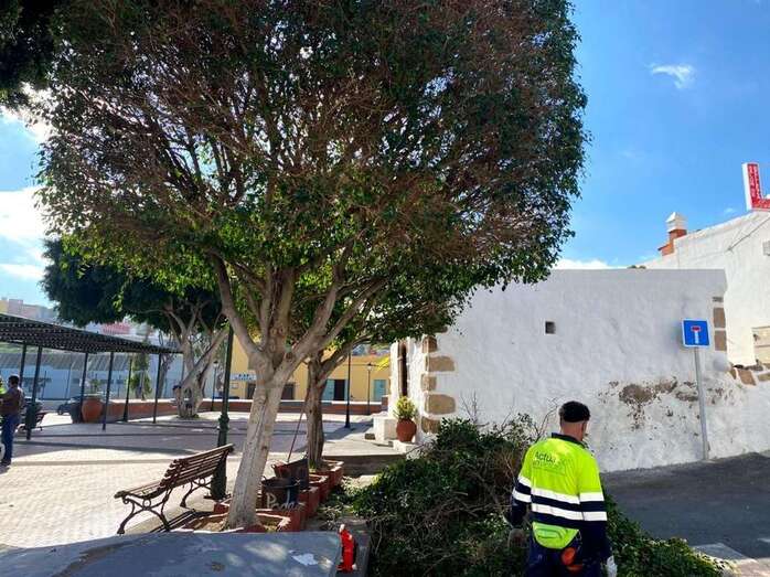 Telde.- La Concejalía de Parques y Jardines del Ayuntamiento de Telde, dirigida por el edil Álvaro Monzón, avanza en la programación de mantenimiento y poda de la arboleda de los barrios teldenses con el inicio de los trabajos en la plaza de Jinámar y su entorno.