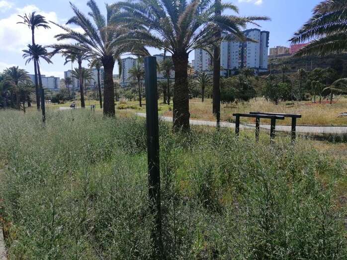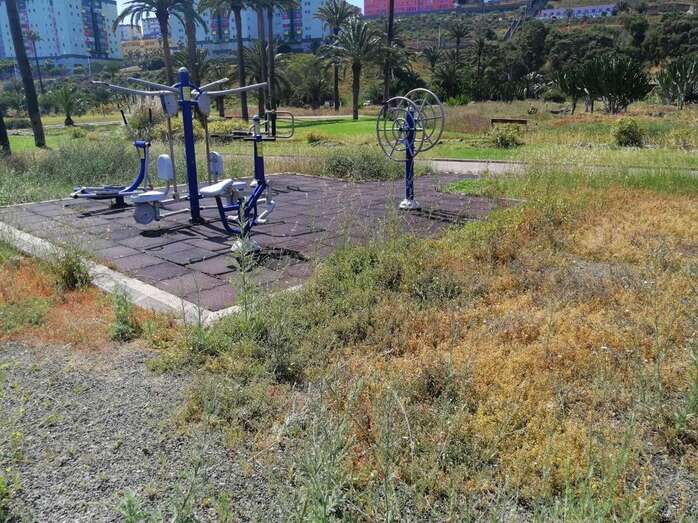 Critican el mal estado de los accesos a este importante recinto verde de Jinámar, muy frecuentado por personas de todas las edades, así como áreas en las que se acumula la basura, zonas de palmeras que están sin podar y en las que se acumulanlas hojas secas caídas, jardines con falta de mantenimiento en los que crecen las hierbas impidiendo ver a las plantas originales, espacios de descanso y de aparatos de actividad física sin cuidar, pasillos de tierra para caminar o correr con zanjas a raíz de las lluvias o cubiertos con malas hierbas, zonas de asadero (ahora cerradas. por la pandemia) también invadidas por la vegetación y en estado de abandono, deterioro de los aparcamientos y edificios sin uso y sin seguridad que suelen ser objeto de actos vandálicos.