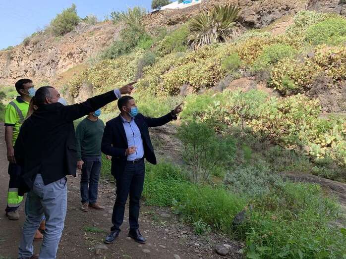 Por su parte, Álvaro Monzón explicó que entre las intervenciones realizadas para habilitar este camino "se han arreglado más de una docena de bocas de pozos de saneamiento, por lo que se ha minimizado el impacto de los vertidos de aguas residuales. Así, con el objetivo de mimetizarlos con el entorno, los cierres de las bocas de estos pozos se han cubierto con piedras del lugar. Asimismo, en algunos puntos del cauce del barranco se ha trabajado para que las aguas pluviales drenen oportunamente".