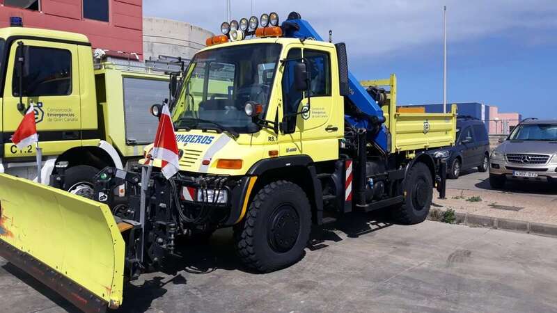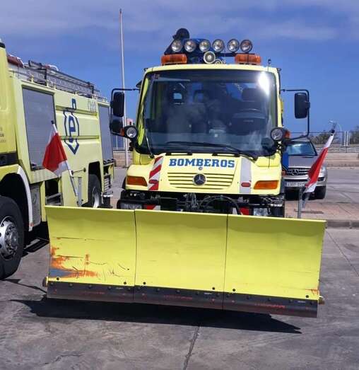 Telde.- Bomberos del parque zonal de La Garita se instruyeron este lunes en Telde en el funcionamiento del vehículo multiusos Unimog, especializado en labores de quitar la nieve de las vías y rescate.