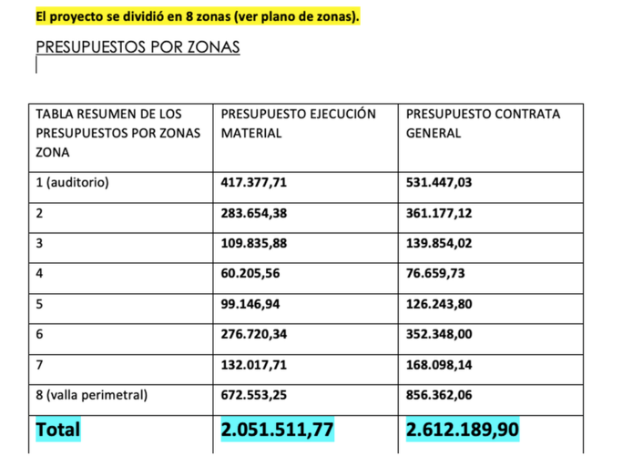 El planteado es un proyecto integral, pero se ha desglosado en 8 zonas para ir ejecutándolas de manera prioritaria. En este sentido, y con una partida de 531.447,03 euros, la primera fase que se llevaría a cabo sería la relativa a la zona del auditorio.