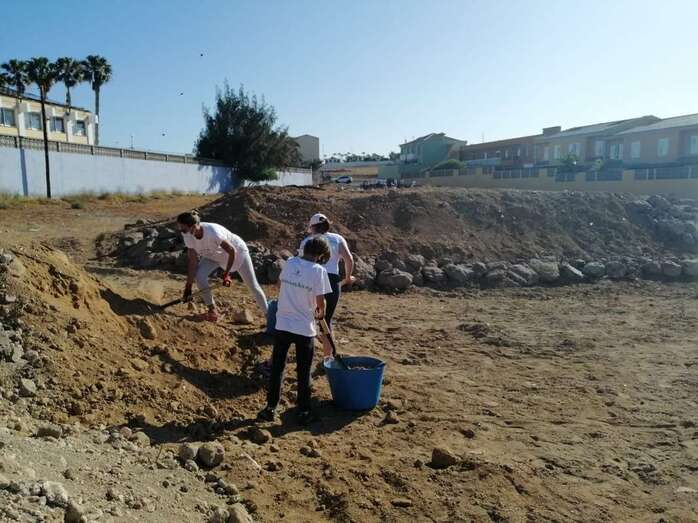 El proyecto de participación ciudadana Barrios Verdes-Barrios Azules llevó a cabo esta mañana una plantación en la parcela ubicada en el CEIP Príncipe de Asturias y la urbanización Costa Jardín