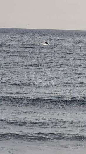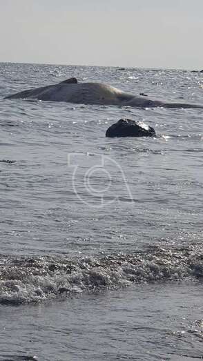 Sospechan que el cetáceo se encuentra en muy mal estado, si no muerto ya, debido a que desde la arena se observa a una bandada de gaviotas revoloteando sobre el animal. También han advertido la presencia de un tiburón dando vueltas a su alrededor.